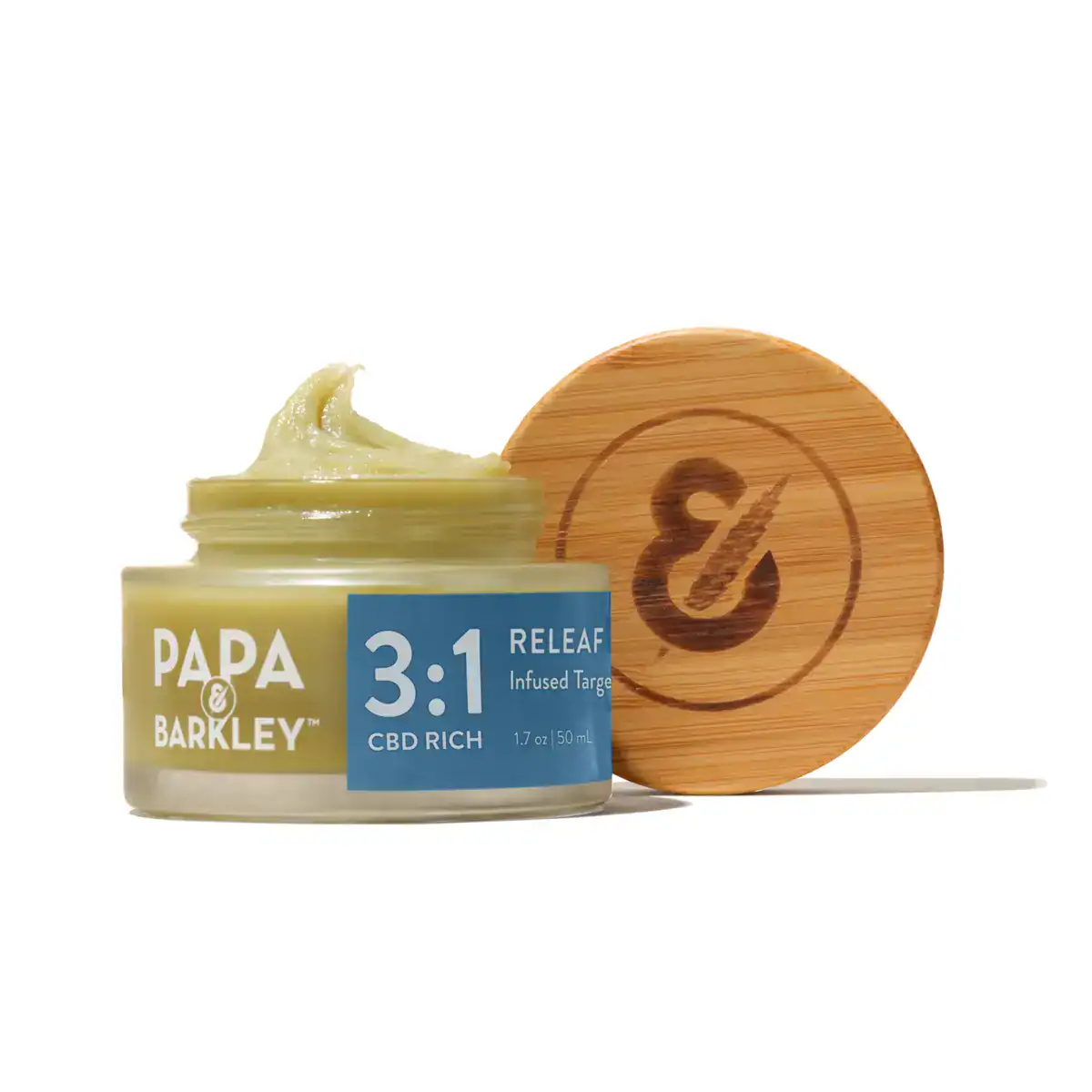 Our 3:1 balm is rich in CBD and is great for easing daily pain relief, muscle and joint care. Our award-winning, balm formula is enriched with nourishing oils including eucalyptus, tea tree, peppermint and lavender. Papa & Barkley’s Releaf Balms are made with our signature solventless, chemical-free infusion process to preserve the plant’s full spectrum of cannabinoids, terpenes and phytonutrients for maximum therapeutic benefits and pain relief. 50ml Balm: 600mg (450mg CBD, 150mg THC) EFFECT PROFILE: Pain Relief Non Psychoactive This statement has not been evaluated by the Food and Drug Administration. This product is not intended to diagnose, treat, cure, or prevent any disease.