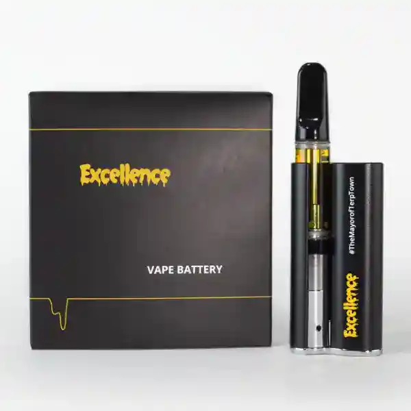 Now you can vape your favorite extracts in style with the Excellence Vape Battery. This slim, sleek, and ultra-portable design fits anywhere and comes with a USB charging cable, black velvet tote bag, and magnetic ring so your cartridges snap into place with ease.